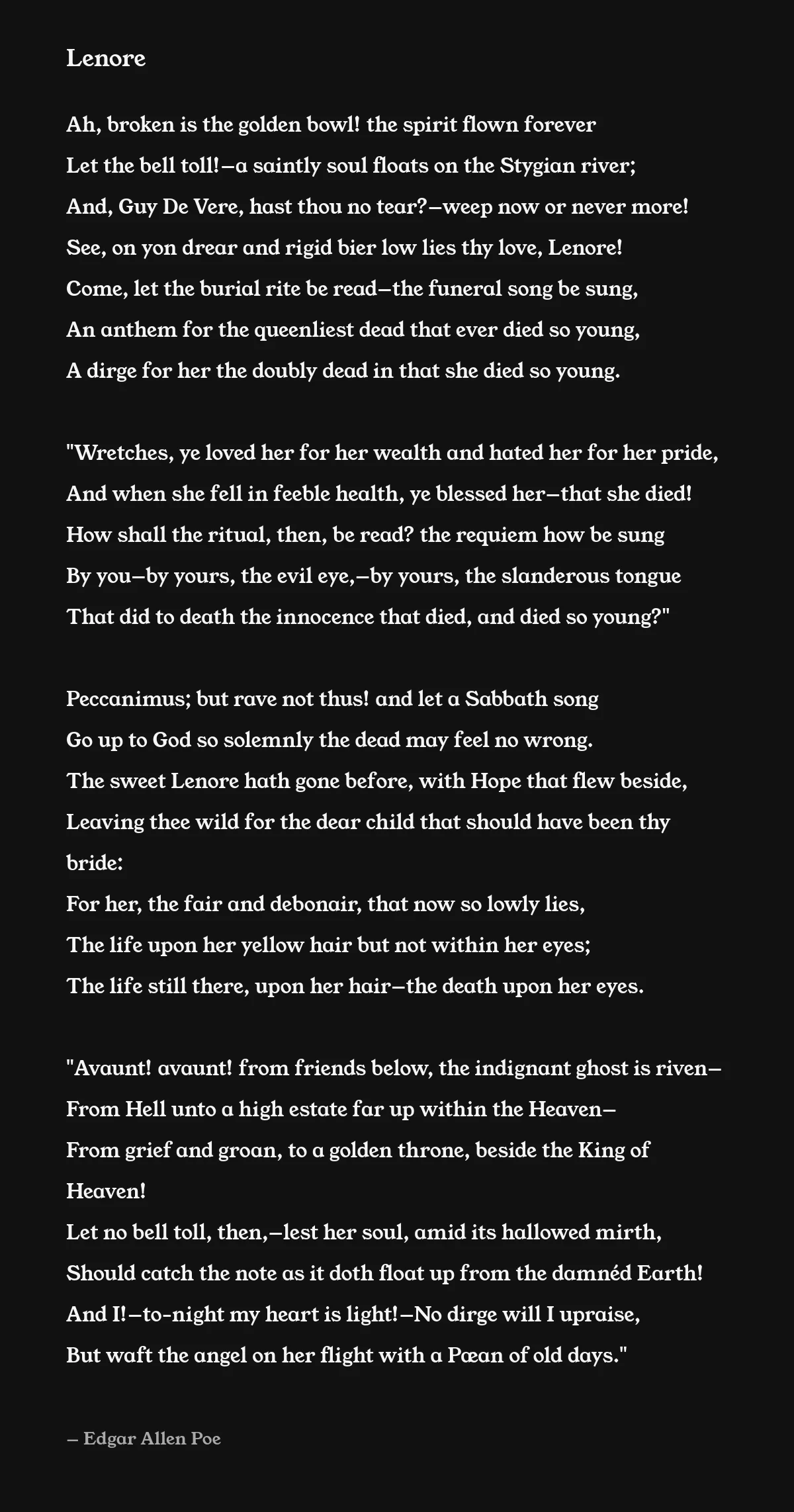 See, on yon drear and rigid bier low lies thy love, Lenore!